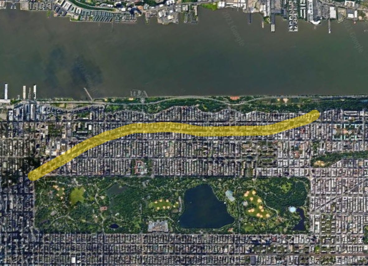Ad esempio, secondo alcuni esperti di pianificazione urbana, tra cui lo stesso Marini, la celeberrima Broadway è stata la prima “linea del desiderio” di New York City in quanto segue la traccia del sentiero Wickquasgeck, quello che i nativi americani percorrevano per raggiungere gli insediamenti pre-coloniali di Manhattan, evitando paludi e colline. Infatti guardandola dall’alto è l’unica strada ad aver mantenuto un andamento piuttosto personale rispetto alla griglia ortogonale su cui si imposta il famoso distretto newyorkese.